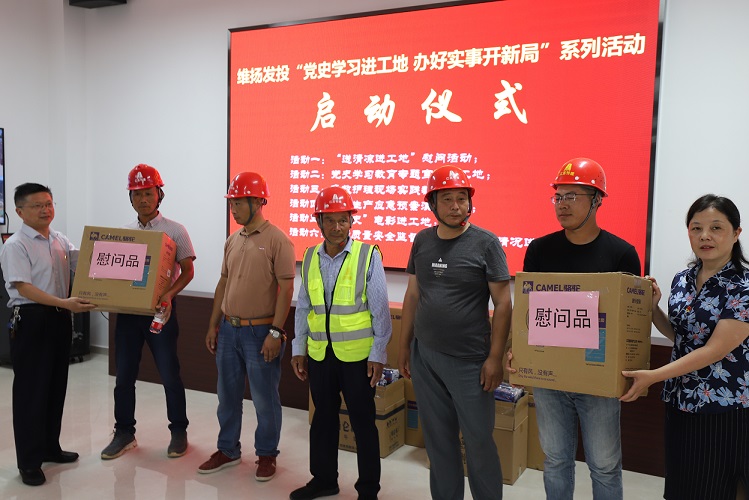 本次活動(dòng)共有五項(xiàng)議程:“黨史學(xué)習(xí)進(jìn)工地辦好實(shí)事開(kāi)新局”系列活動(dòng)啟動(dòng)儀式;進(jìn)行維揚(yáng)發(fā)投現(xiàn)場(chǎng)教學(xué)點(diǎn)揭牌儀式;進(jìn)行泰和佳園項(xiàng)目質(zhì)量安全監(jiān)督員聘任儀式;進(jìn)行維揚(yáng)發(fā)投志愿者服務(wù)隊(duì)授旗儀式;開(kāi)展“送清涼進(jìn)工地”慰問(wèn)活動(dòng)。